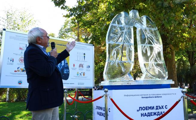 „ Ледената статуя на бял дроб се топи последователно, с което целим да покажем нагледно, какво значи прогресивно заболяване, а точно положение, което се утежнява с времето. Идиопатичната белодробна фиброза е прогресивно заболяване, само че ранната диагностика би могла да помогне за закъснение на прогресията”, сподели доцент Ходжев.