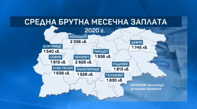 Поглед към цената на труда у нас. Малки общини с огромни работодатели и към регионалните центрове - в топ 10 на местата с най-високи заплати. Това демонстрира изследване на Института за пазарна стопанска система.