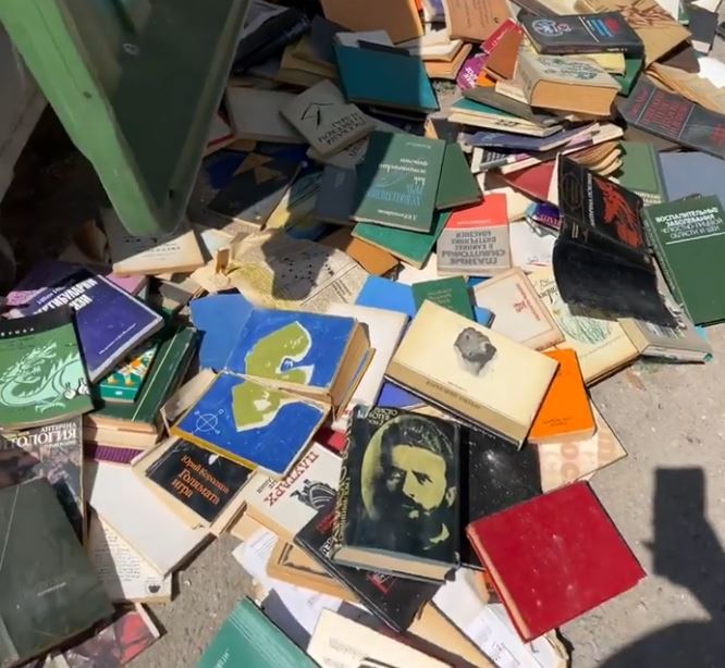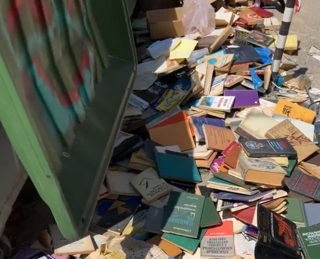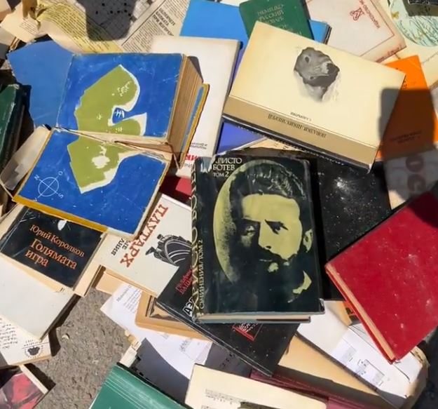 На видео се вижда голям куп към този момент ненужни книги, които са се озовали до казани за боклук в Русе. В едно от томчетата са събрани и творби на поета бунтовник, а неговият лик ни гледа от корицата. Сред книгите русенци виждат и извънредно скъпи заглавия, някои от които към този момент откриват и нови притежатели, които ги прибират за библиотеките си.