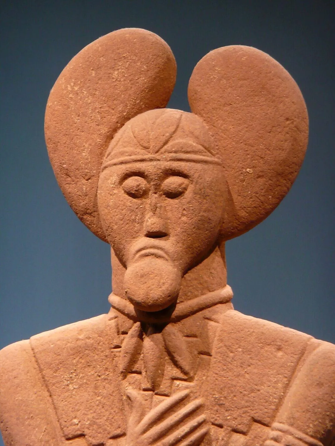 Скулптурата изобразява мъж с присъща декорация за глава, торк (къса железна огърлица), щит и меч – знаци на висок обществен сан. Оръжията и накитите подсказват, че заровеният не е бил елементарен боец, а представител на елита – евентуално държател, съчетаващ политическа и религиозна власт.