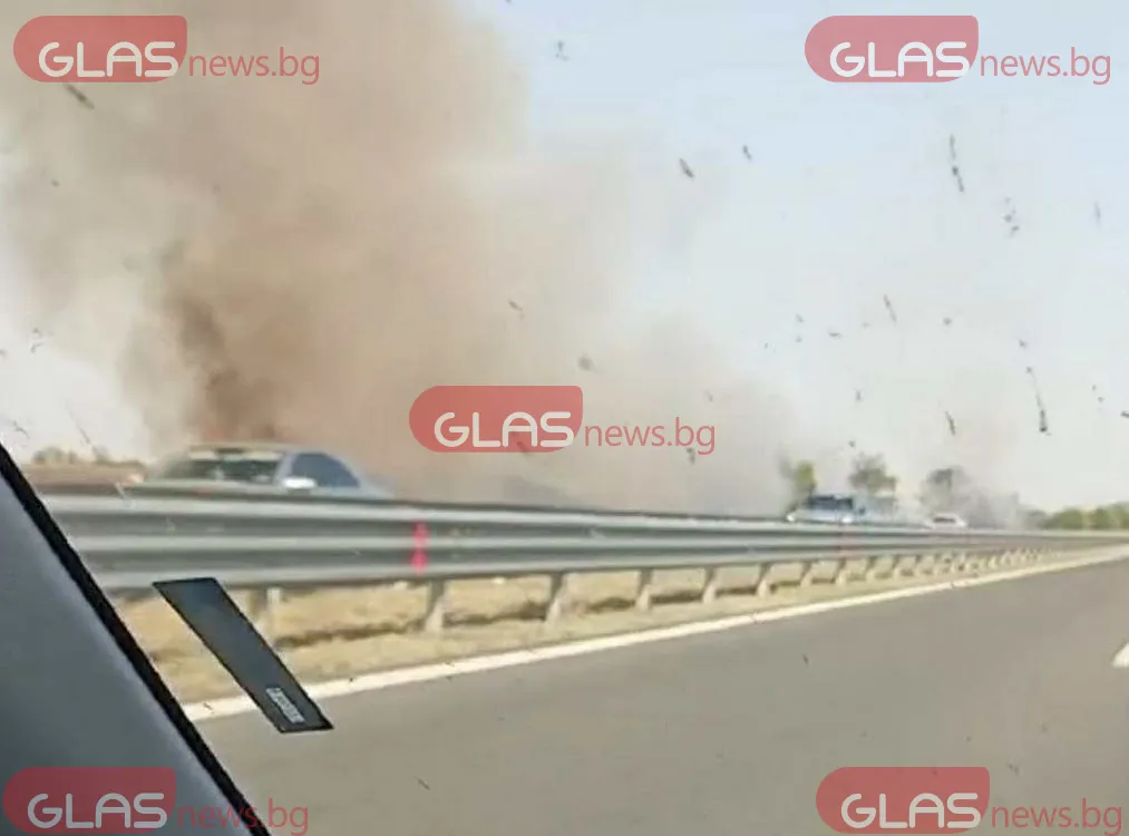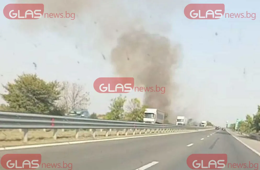Пожар е избухнал край Автомагистрала " Тракия " преди минути, заяви кореспондент на GlasNews.