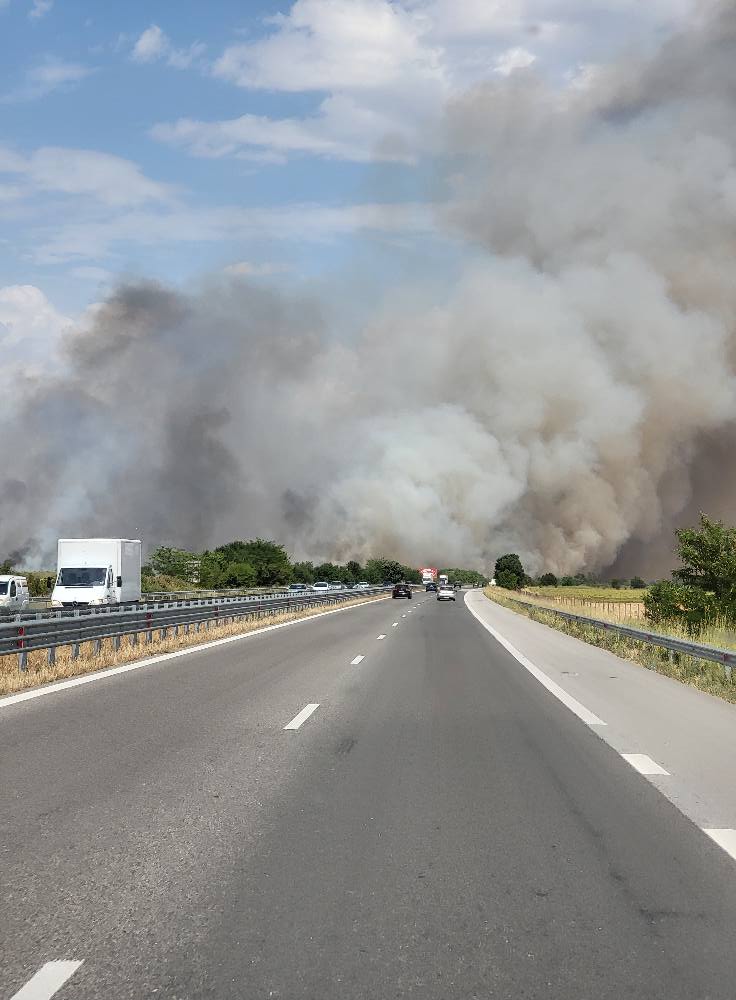 Само преди минути от пожарната в Пловдив оповестиха за пожар в региона на Автомагистрала " Тракия ". Движението е съществено затруднено поради пожар в житни масиви и мощно задимяване на пътното платно в региона сред 118 км и 124-ти км. Огнеборци с пет противопожарни автомобила гасят пламъците, а чиновници от бранш „ Пътна полиция ” пренасочват трафика по обходни направления. Автомобилите, които се движат към София, се отбиват от 126-ти км към село Труд. По направление Бургас минават от 118-ти км през Голямоконарско шосе.