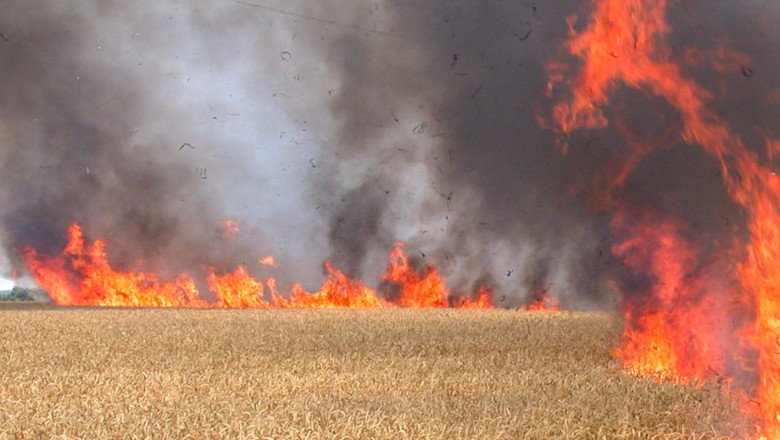 Посеви с пшеница пламнаха по време на жътва в Монтанско
