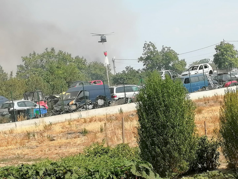 На място са пристигнали няколко екипа на пожарната. Хеликоптер също се е присъединил в гасенето на огъня.