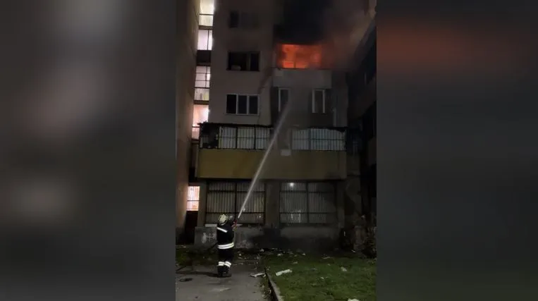 Кадри, публикувани във Фейсбук, демонстрират пожарникарите, които гасят горящия апартамент, намиращ се на четвъртия етаж. На друто видео се вижка по какъв начин гражданин на блока се пробва да бори пламъците, хвърляки кофа с вода към терасата.