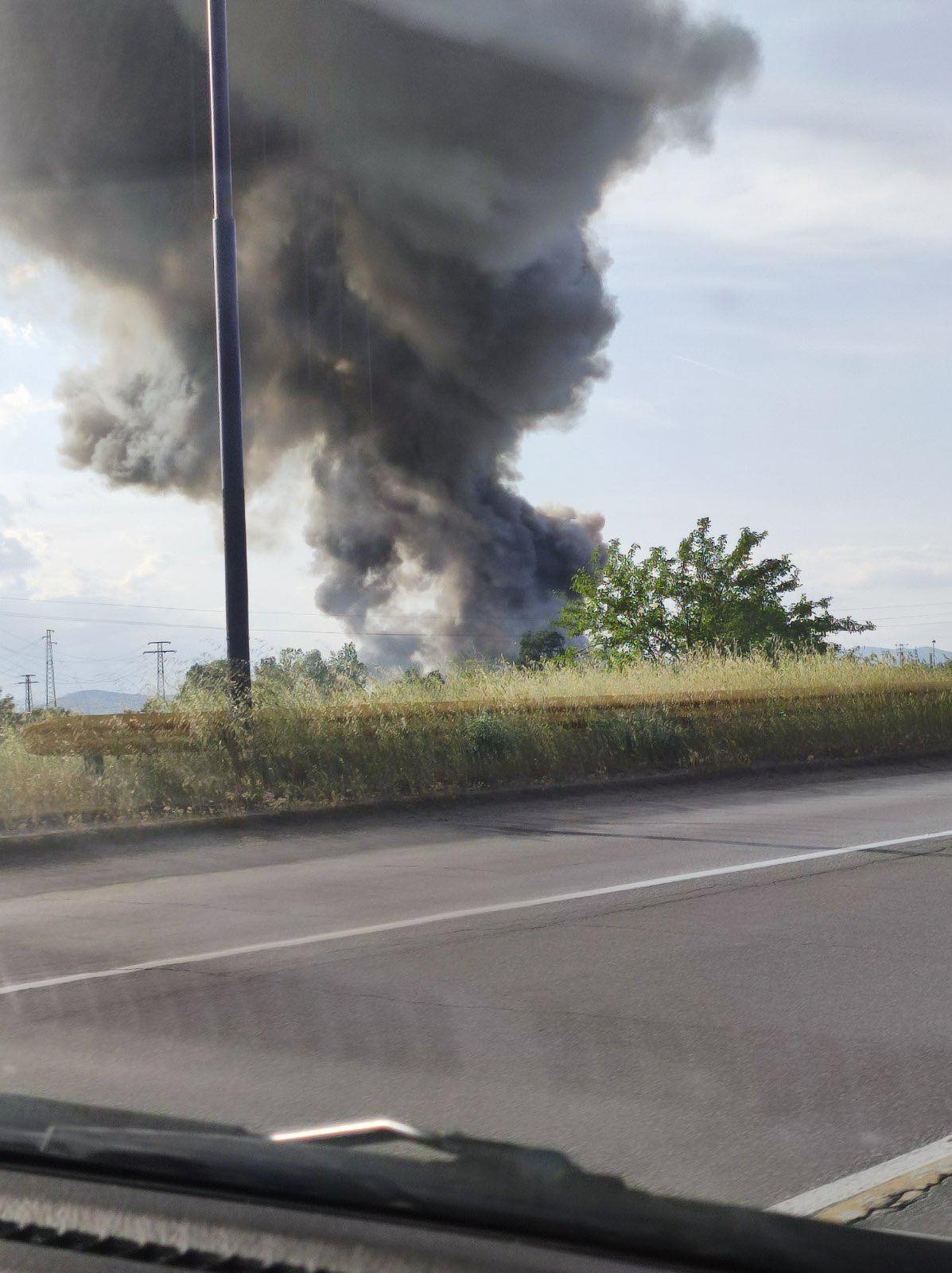 Пожар е зародил на площадка за преработване на коли в Пазарджик.