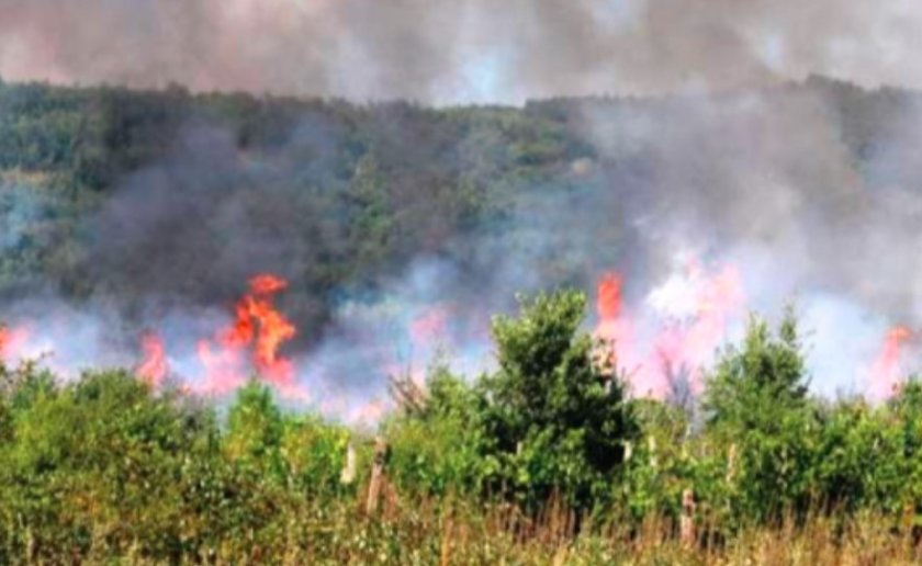 В момента на място са три екипа на пожарната, защото има заплаха огънят да се популяризира в непосредствен боров масив, предава Българска телеграфна агенция.