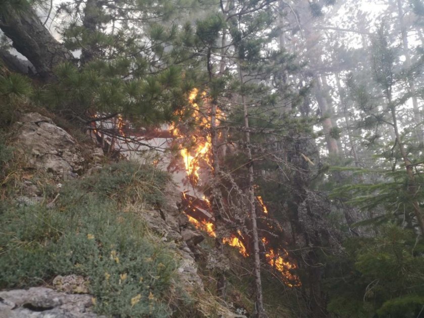 Пожар гори и в Национален парк “Пирин ”. Вчера към 17:00 ч. паркови чиновници виждат пушек в местността Корията, в парков сектор " Каменица ". Незабавно четирима чиновници на Дирекция " Национален парк Пирин " се насочат към мястото, с цел да локализират пожара.