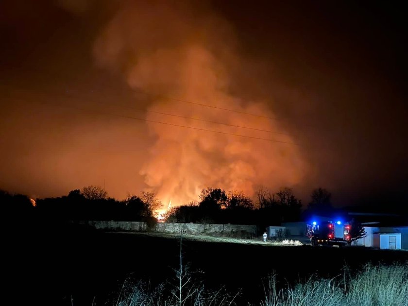 Пожар гори в двора на цех " Арсенал " в Казанлък.