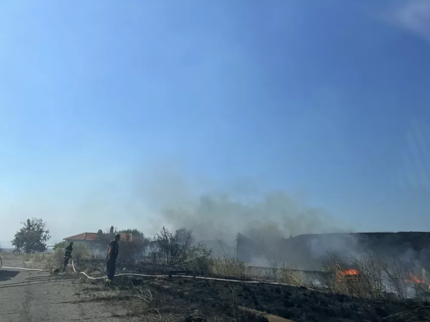 Пламъците се намират в непосредствена непосредственост до няколко постройки, като пожарникарите поставят старания огънят да не доближи до тях, оповестява Българска национална телевизия.