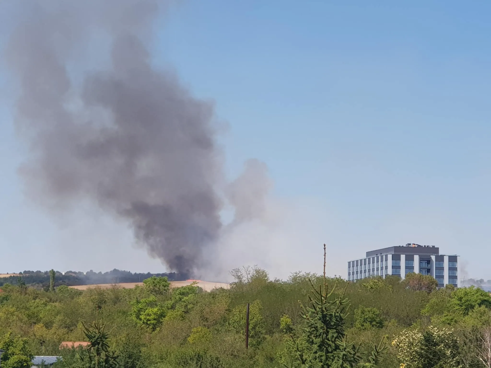 Пожар гори във Велико Търново. Огънят е обхванал сухи треви в региона на Националния боен университет „ Васил Левски “.