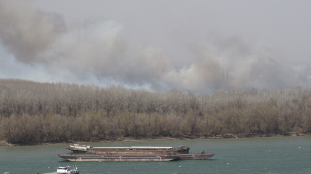 Пожар, горящ в сухи треви в региона на Гюргево, донесе гъст черен пушек в Русе.