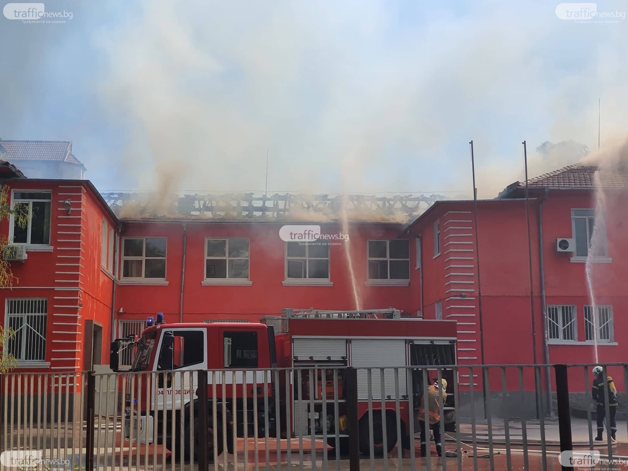 Пожарът в ОУ " Душо Хаджидеков " е сподавен, оповестиха от пловдивската пожарна. Щетите по постройката са огромни - целият покрив е изпепелен.