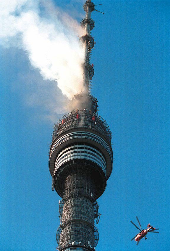 При изграждане на кулатата в Останкино през 1967 година, тя е най-високата сграда в света. Използването на авансово под напрежение стоманобетон, стегнат със стоманени въжета, разрешава структурата й да остане елементарна и здрава, само че не дава отговор на актуалните условия за противопожарна сигурност. Това принуждава пожарникарите да работят съвсем на сляпо при потушаване на огъня и да водят борба с него в продължение на 26 часа.