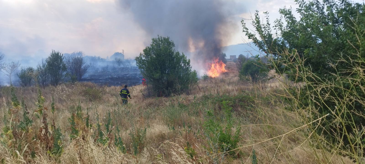 Пожарите в страната не стопират да бушуват. Огнени пламъци са обхванали и могилата в град Баня, Карловско, научи GlasNews.bg.