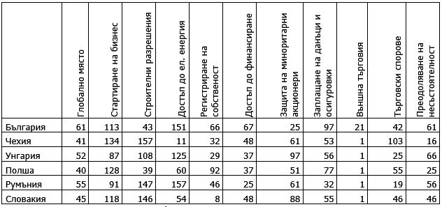 Видно от изложеното, България няма с какво да впечатли евентуални вложители, които биха избирали всред някоя от 6-те страни.