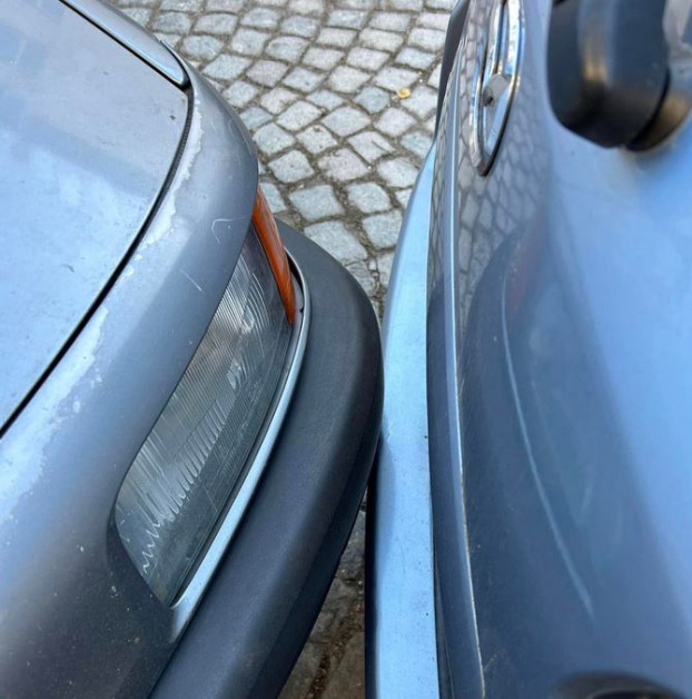 Шофьор със сивичко комби съумя хем да попрепречи улицата, хем да застане " рисково близко " до колата пред него.
