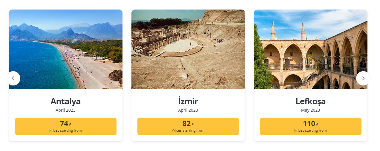 До Бодрум, цените на билетите през летния сезон стартират от 84 евро в посока. Летният курорт е сживописни плажове, богат нощен живот и е желано място за летни ваканции.