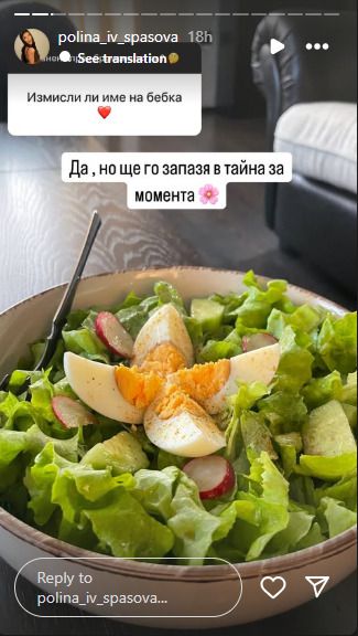 В диалог с почитателите си в Инстаграм Поли показа, че към този момент са измислили име на бебето, само че към този момент ще го резервира в загадка.