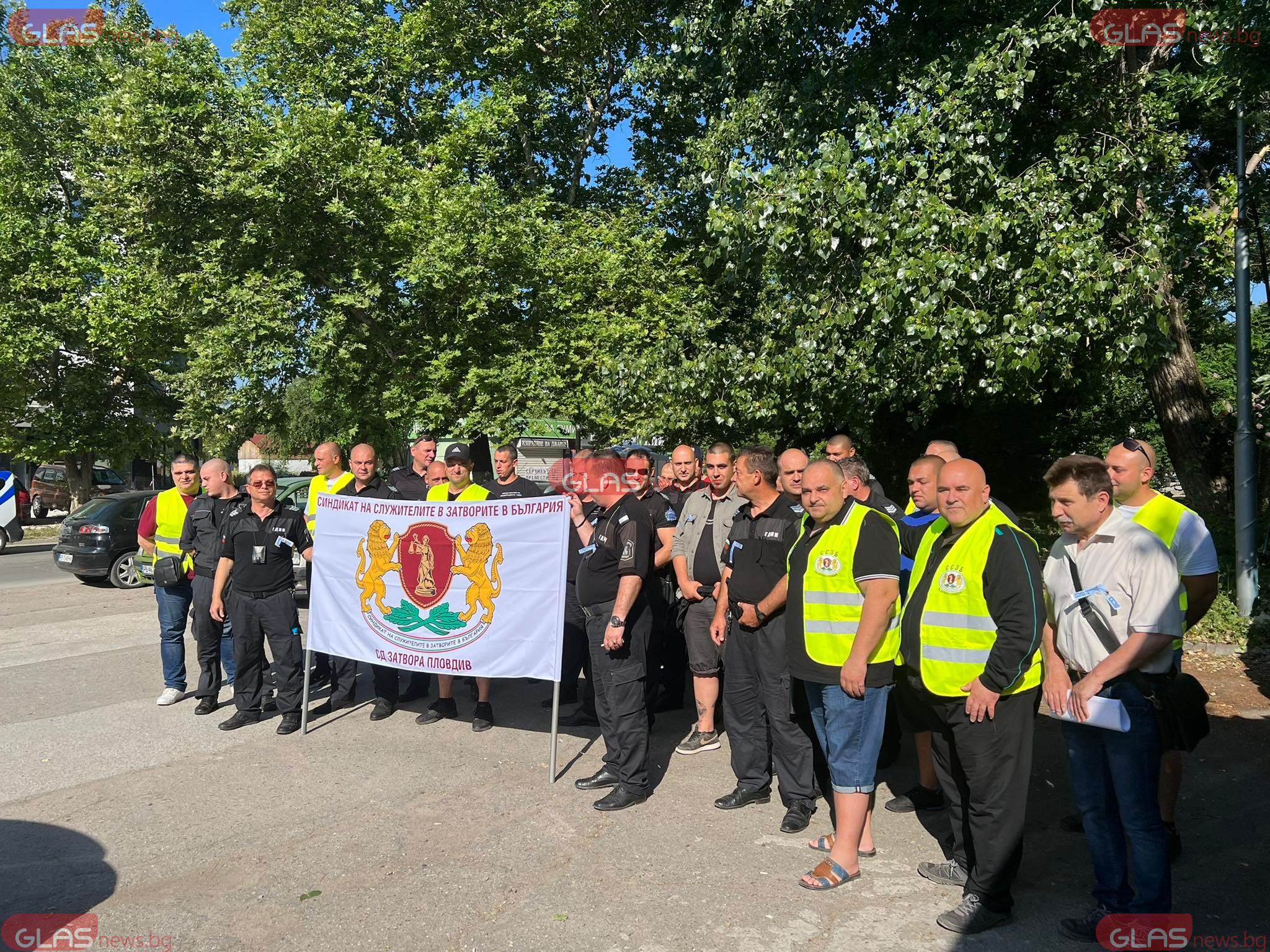 Няколко десетки чиновници от Старозагорския затвор също се събраха на митинг тази заран. „ Настояваме за нарастване на заплатите с 25 на 100 и промени в бранш „ Сигурност “, разгласи Иван Коцев ръководител на локалната организация на Синдиката на чиновниците в пандизите в България (ССЗБ).