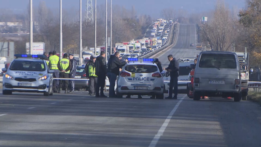 Патрулът, преследващ буса с мигранти, е изискал подкрепление от свои сътрудници. Полицейски патрул е ситуиран на едно от островчетата край платното за придвижване на входа на София в подготвеност да спре преследвания бус. Преди удара в полицейския автомобил няма следи от спирачен път, само че по асфалта се вижда ясно по какъв начин са се влачили двете коли след удара.