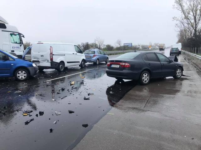 Автомобилът на причинителя на случая (вдясно) Неговата кола е блъсната откъм гърба от персоналния автомобил на униформения, а по-късно се е получила верижна злополука с още няколко автомобила. Цяло знамение е, че няма жертви поради сериозната скорост, с която е карал нарушителят под пагон и неспазването на отдалеченост.