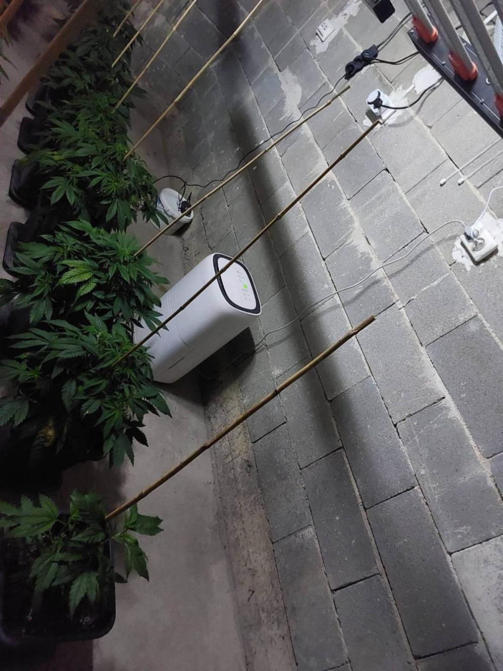 От подземната наркооранжерия са конфискувани 42 саксии със засадени растения от рода на конопа със междинна височина 50 см и обща листна маса към 5 кг, реагираща на канабис при полеви наркотест. За развъждане на наркокултурата пространствата били оборудвани с съвременни механически уреди - лампи, вентилатори, въздуховоди за циркулация на въздуха и сензори за надзор на топлота, светлина и влага.