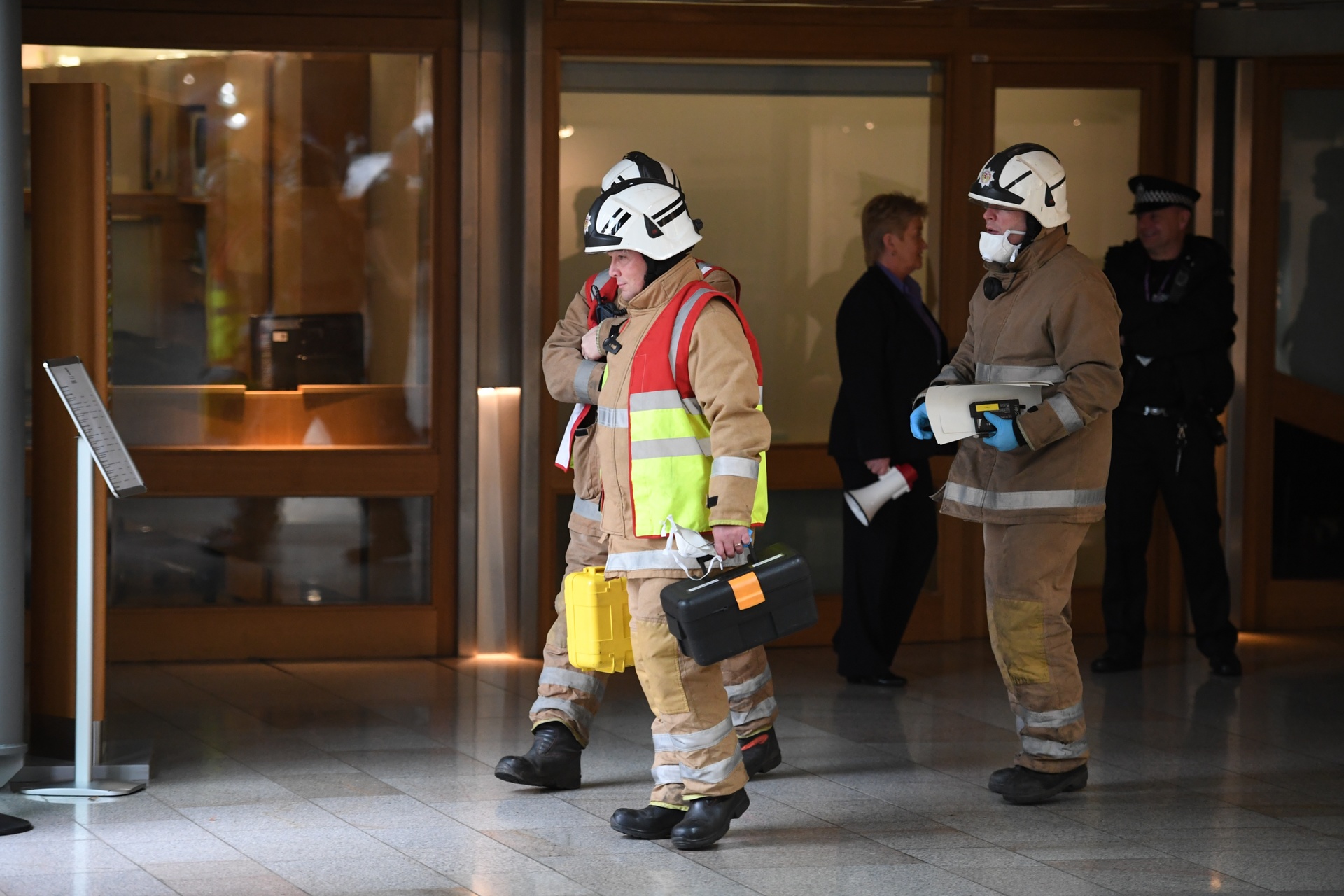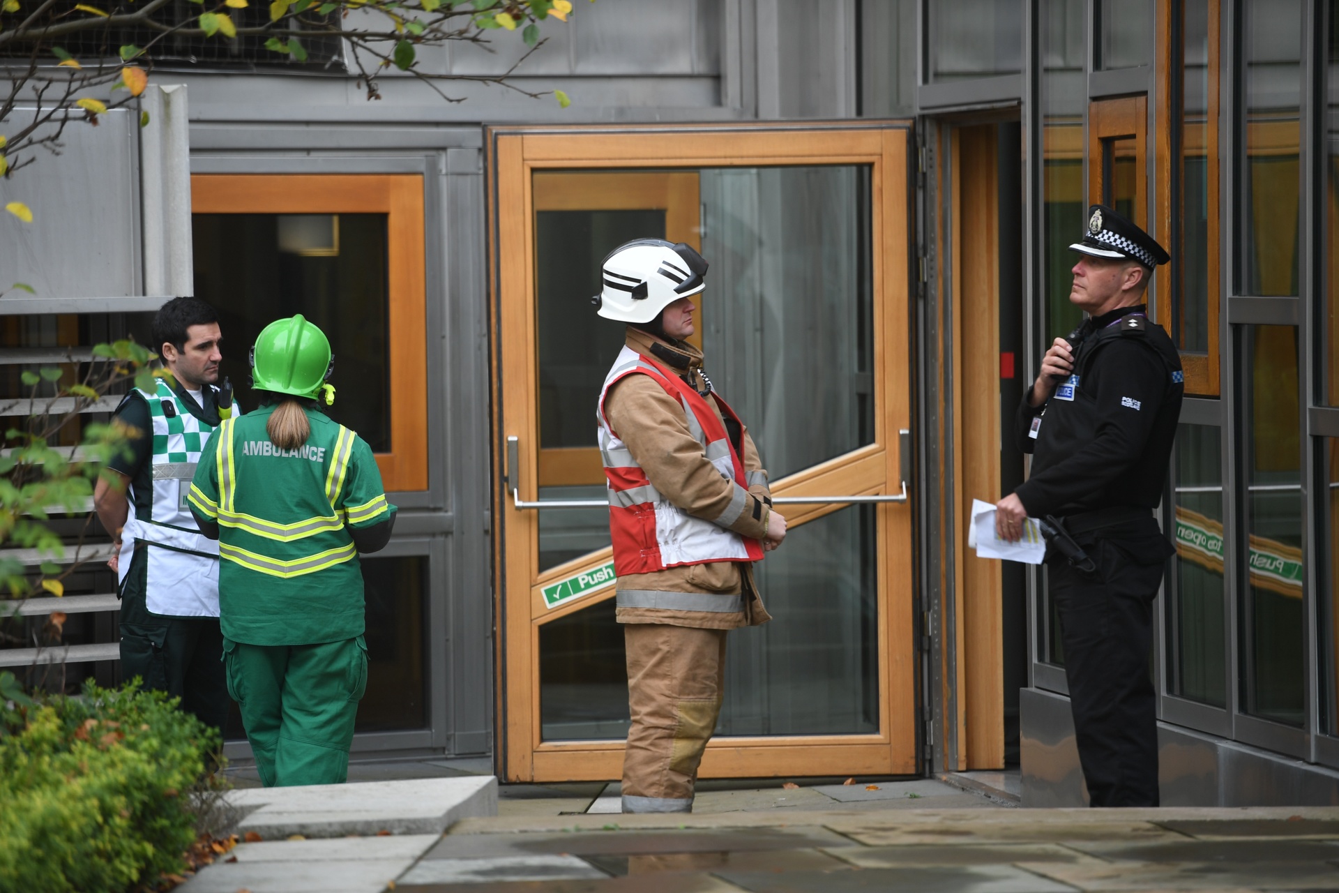 Около постройката са били спрели коли за спешна помощ и коли на шотландската пожарна и избавителна работа.