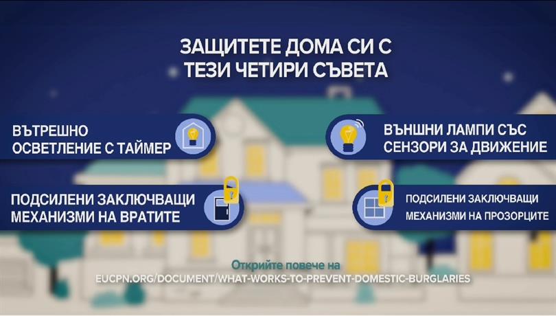 Полицията в Пловдив стартира осведомителна акция за противопоставяне на домовите обири. Брошури с рекомендации към жителите по какъв начин да предпазят домовете си от похищения стартират да популяризират служители на реда в Пловдив и региона. Организацията е основана в границите на взаимната превантивна акция на Главна дирекция „ Национална полиция “ и Европейска мрежа за предварителна защита на престъпността (EUCPN). Инициативата се осъществя дружно със Съюза на ключарите в България за повишение осведомеността на хората за опциите за обезпечаване на ефикасна техническа отбрана на жилищата.