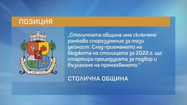 След питане на bTV стана ясно, че постройката е включена в листата на Столичната община с обекти за унищожаване. Вече е издадена и заповед от основния проектант на София. „ Столичната община има подписано рамково съглашение за тази активност. След приемането на бюджета на столицата за 2022 година ще започва процедурата за асортимент и възлагане на премахването “, споделят от Общината.