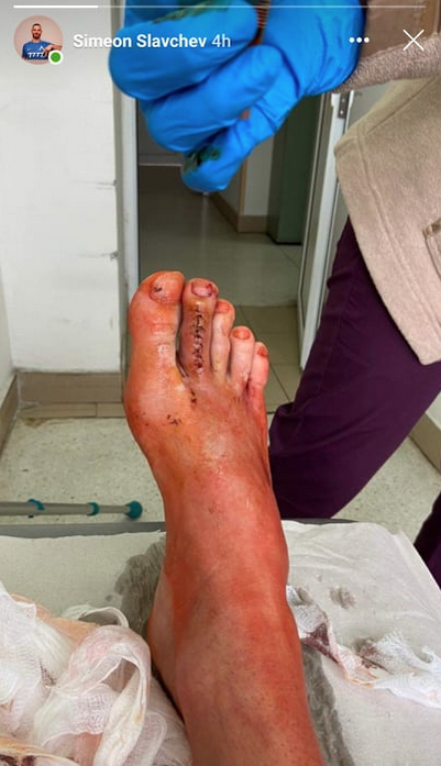 Полузащитникът на Левски Симеон Славчев разгласява ужасяваща фотография след сполучливата интервенция на пръст на крайници. Интервенцията бе осъществена в понеделник в УМБАЛСМ „ Н. И. Пирогов “ в София от доцент Людмил Симеонов и неговия екип.