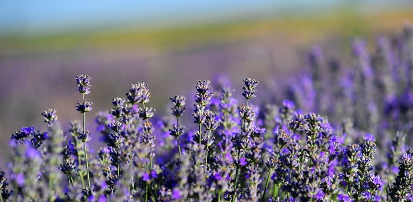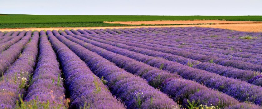 Поля с разцъфнала лавандула край село Пристое, Шуменска област.