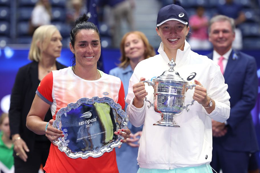 Това е първи трофей за полската тенисистка от Откритото състезание на Съединени американски щати и общо трети на сингъл от шампионатите от Големия шлем, а Онс Жабер игра на втори следващ край на сходно равнище, откакто загуби от Елена Рибакина в борбата за купата на „ Уимбълдън “.