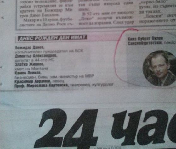 Малария Велева се присмива на „ дебилите “ от „ 24 часа “. Случаят изцяло оправдава потреблението на този живописен прийом. На 5 ноември написали честитка за рождения ден на царския наследник княз Кубрат. И над фотографията се кипри текст: „ Кубрат Пулев Сакскобургготски, доктор “. Мого крепко! Very cool! Това е не за Полюцър, ами за два едновременно. Такава нелепост даже и състезателен публицист не може да напише, те най-малко знаят, че Кубрат Пулев не е доктор.