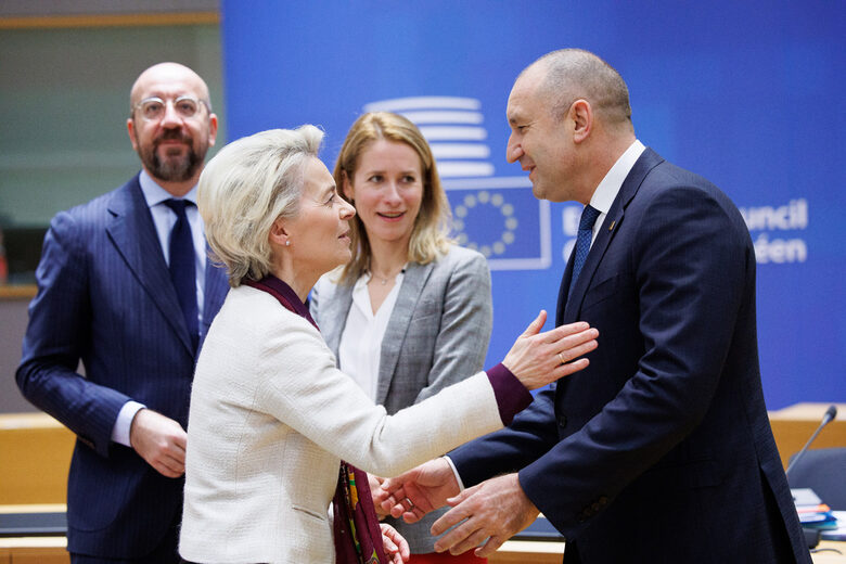 Те обръщат внимание на множеството рецензии против него, че е сътрудник на проруско въздействие в България и изброяват негови изявления и позиции в тази посока. Но незабавно следват и разяснения, че в Брюксел Радев утвърждава общи позиции на европейския съюз и НАТО против съветската експанзия и няма нищо срещу назначените от него служебни държавни управления да усилват производството на военнопромишления комплекс на България " за нашите потребности и тези на съдружниците ". Най-вероятно това се е отразило тежко на рейтинга му - от 51% утвърждение през февруари 2022 година той е слязъл на 36% през декември, сочат данни на " Алфа Рисърч ". На фона на останалите политици това напълно не е неприятен резултат.