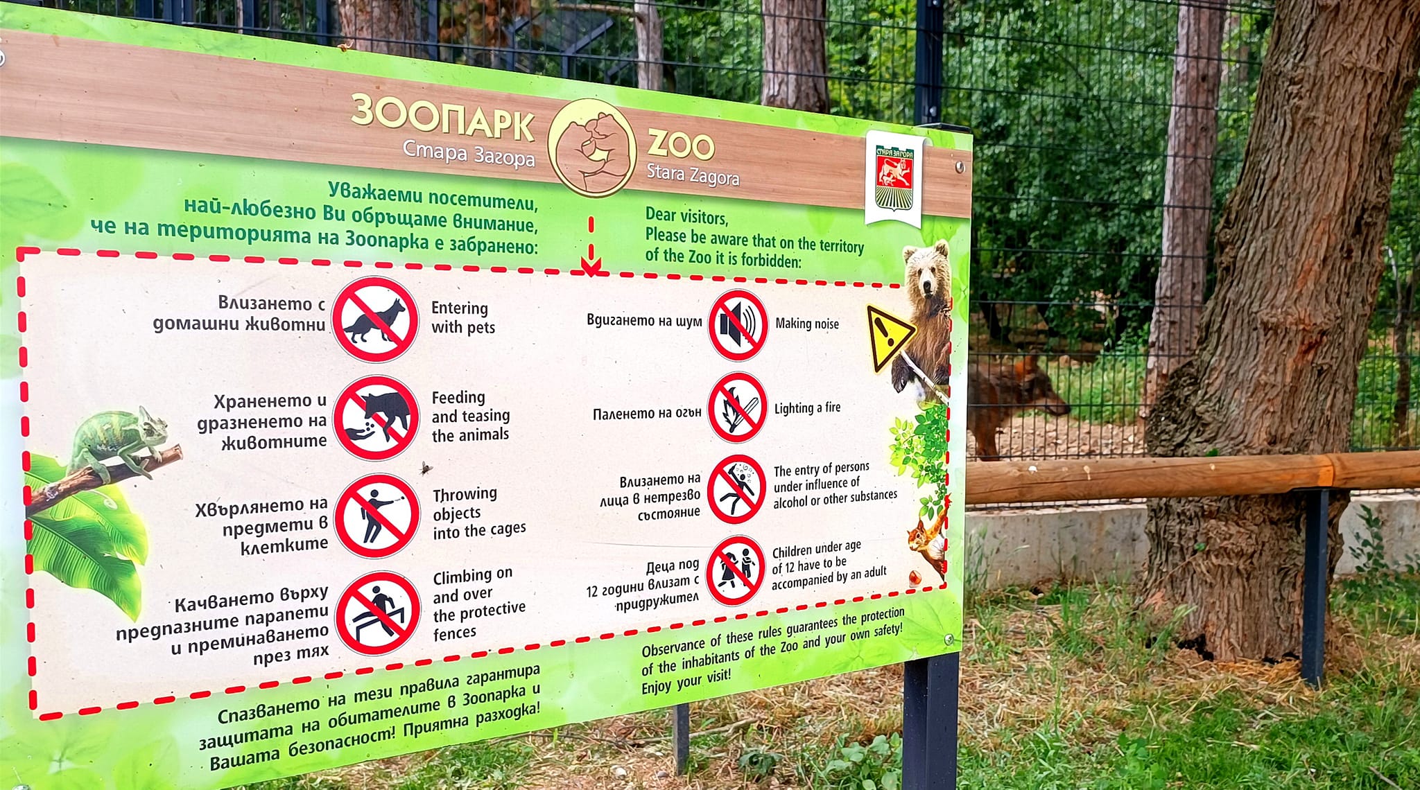 Още със стъпване си в зоопарка, всеки един клиент е осведомен със задълженята си. На осведомителна табела е разказано какво е неразрешено, като по една от точните е упоменато да не се нервират животните и да не бъдат хранени. Дали се има поради и „ Не галете животните “.