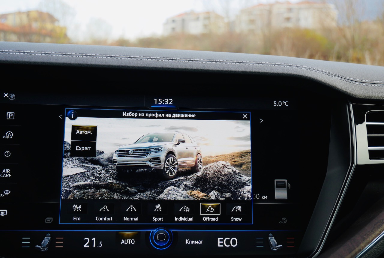 В интериора определените естествени материали, като кожа " Vienna " с противоположен тегел или опционалният кожен салон " Savona ", обилие от алуминий и детайли в купето от прелестно обработено дърво, внасят нужната доза класа, толкоз значима за клиентите в първокласния сегмент. Веднъж настанили се в интериора, технологиите стартират да се грижат за вас. Всичко се дирижира от цифровия кокпит Innovision Cockpit, който Volkswagen интегрира за първи път тъкмо в Touareg, с цел да покажат какъв брой значим за тях е моделът. Всичко в интериора ти дава чувство за високотехнологичен, удобен и необятен офис, в който със жанр да вършиш работата си или да се отдадеш на дълги пътувания.