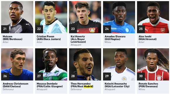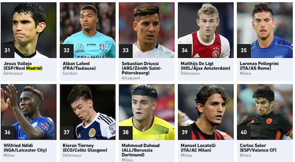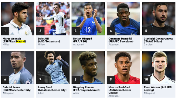 Популярният френски вестник “Екип” дефинира Марко Асенсио за най-хубавия млад футболист в света, роден след 1 януари 1996 година Изданието обаче не разкрива по какви критерии е наредило своя Топ 50. Втори в листата е Деле Али (Тотнъм), следван от най-скъпия младок Килиан Мбапе (ПСЖ), Усман Дембеле (Барселона), Джанлуиджи Донарума (Милан) и така нататък