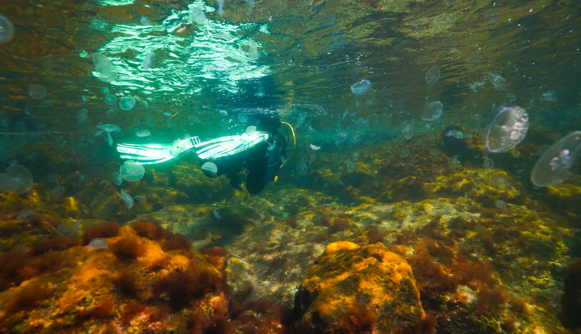 Сега, когато съвсем няма „ разцвет “ на планктон и водата става все по-студена, прозрачността на водата е доста по-голяма.