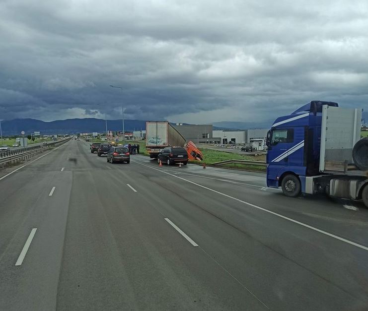 Пореден случай на пътя стана през днешния ден. Камион е аварирал на Околовръстното преди бензиностанция „ Лукойл “.