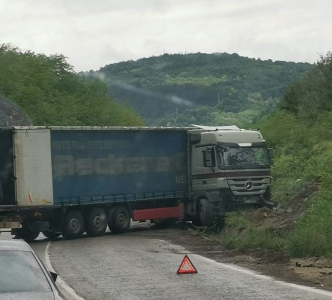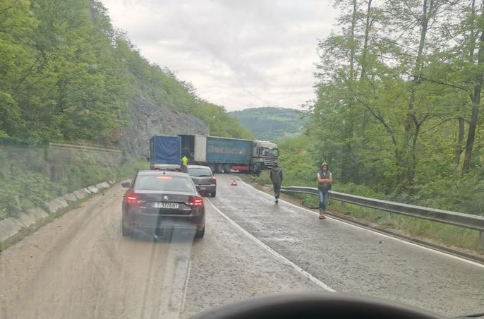 ТИР е излязъл от пътя сред Въглевци и Вонеща Вода. Произшествието е станало към 18 часа. Движението в сектора не е спряно, само че е затруднено. Част от товарната машина е запречила едната лента.