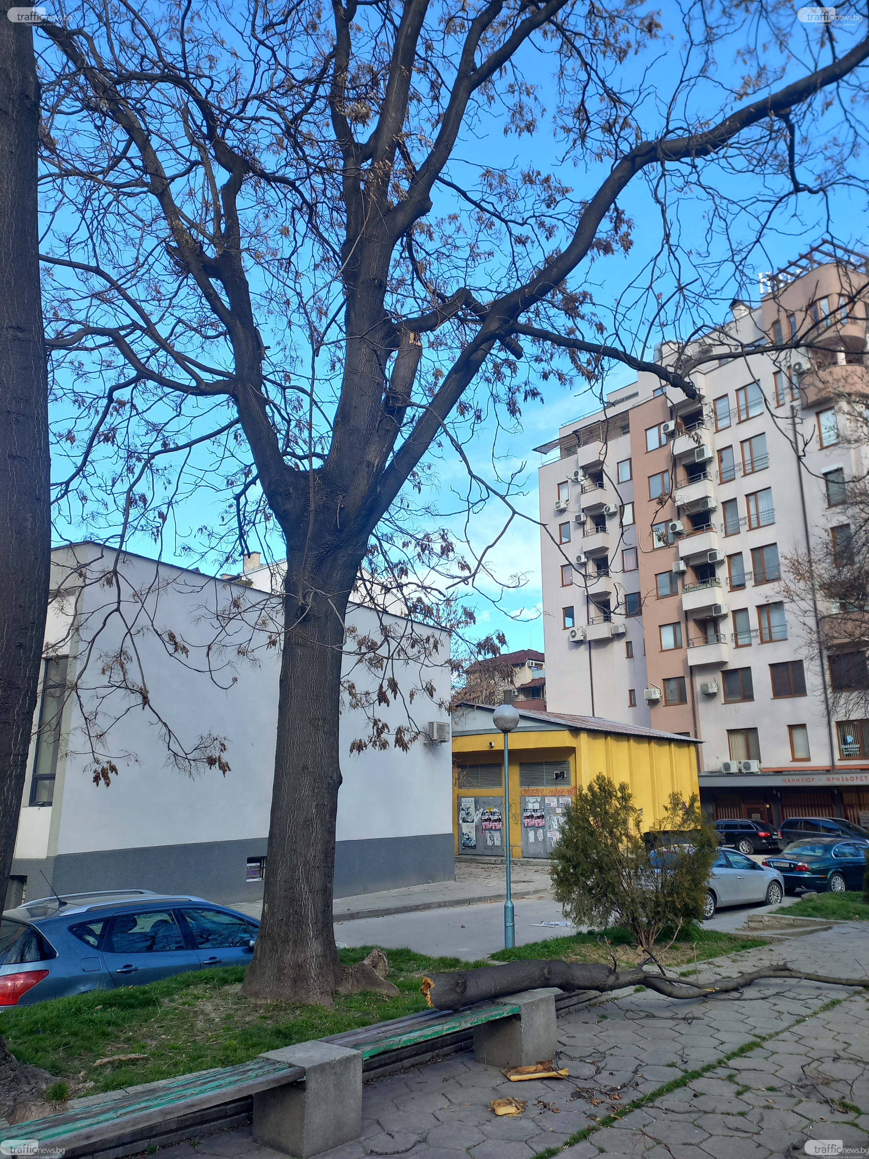 Голям клон се стовари на метри от детска площадка в центъра на Пловдив