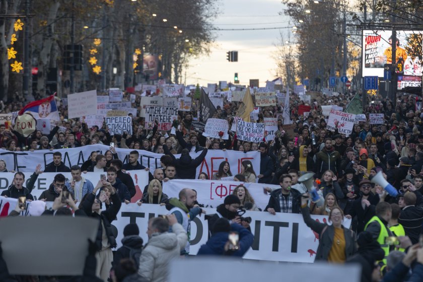 Многохиляден протест в Белград търси отговорните за трагедията в Нови Сад
