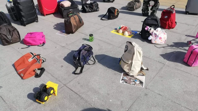 Протестиращите построиха апаратура с куфари и обувки в памет на жертвите, на вчерашната покруса в Краматорск по време на евакуация на мирните поданици.