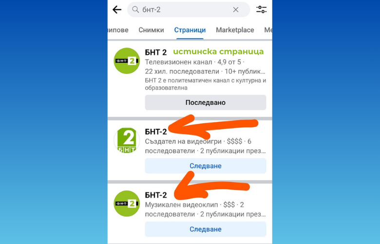 Автентичната страница на Българска национална телевизия 2 във Facebook - тя не е спонсорирана, за разлика от другите две.