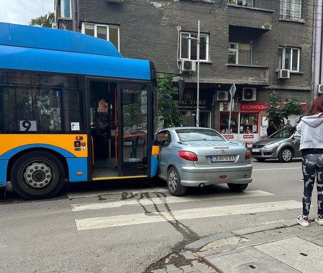 Автобус от градския превоз и лек автомобил са се блъснали на пешеходна пътека. За станалото алармират жители в групата " Катастрофи в София ".