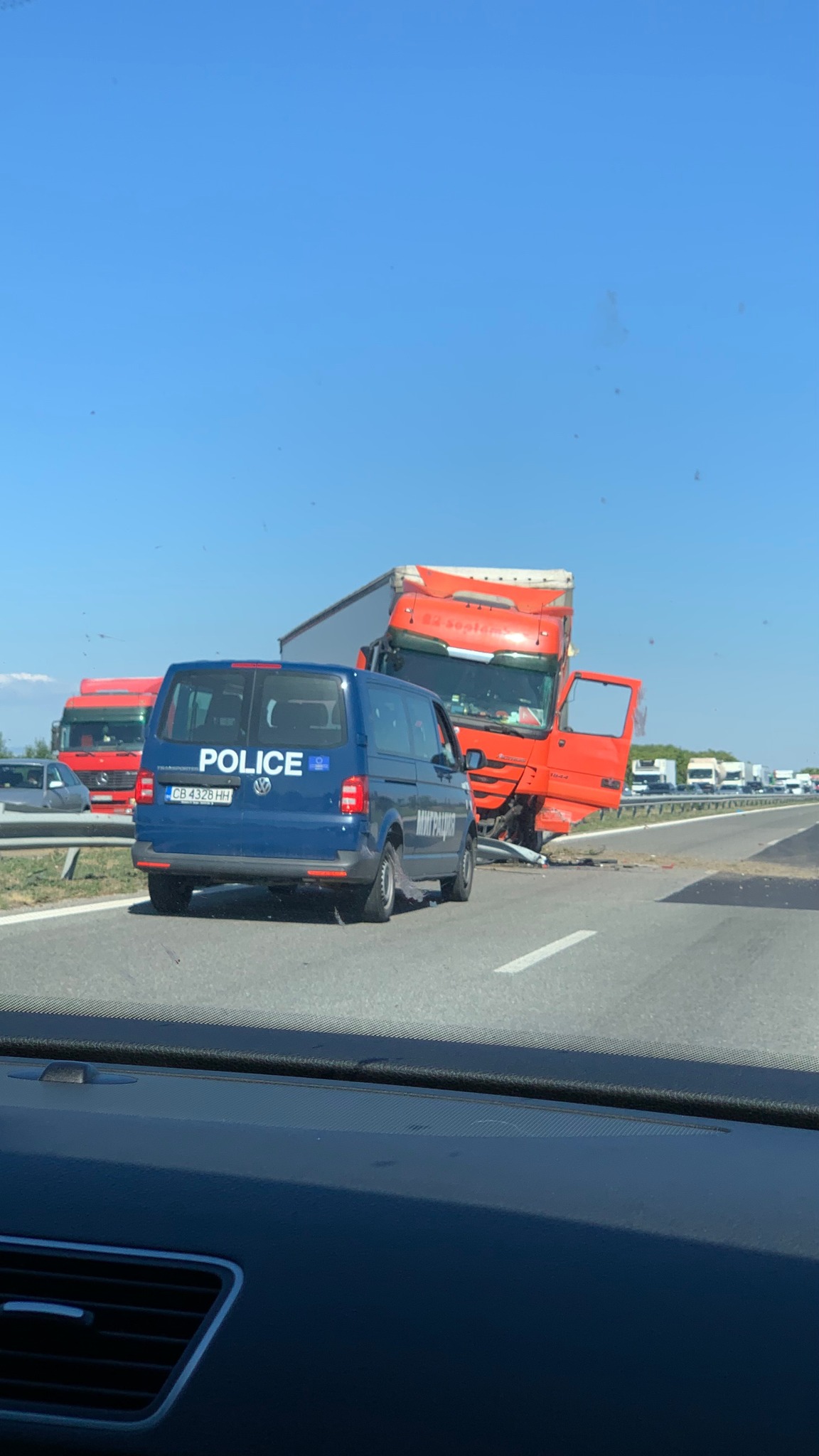 Пореден тежък случай стана на автомагистрала „ Тракия “. Камион със сръбска регистрация се е врязал в разграничителната мантинела сред двете платна за придвижване. Инцидентът е на 124 километър в посока София.