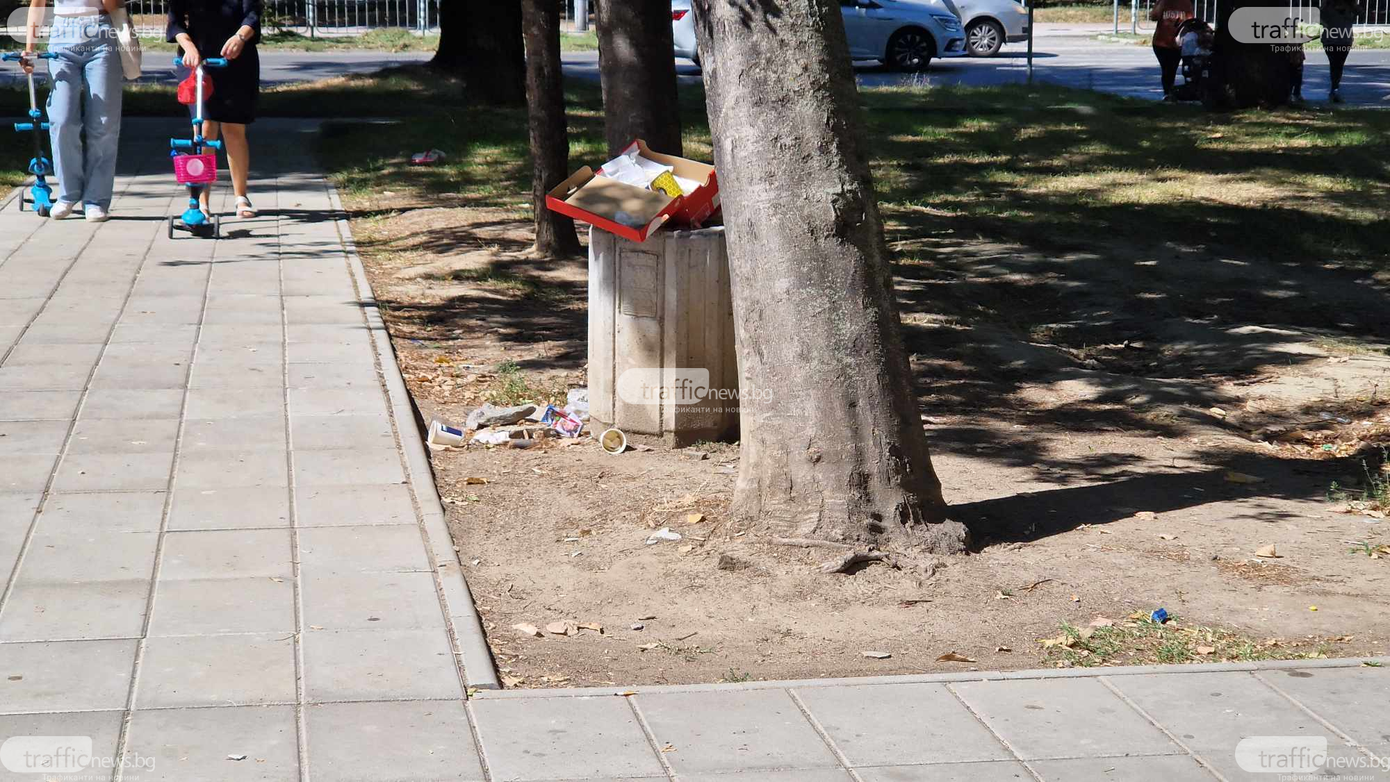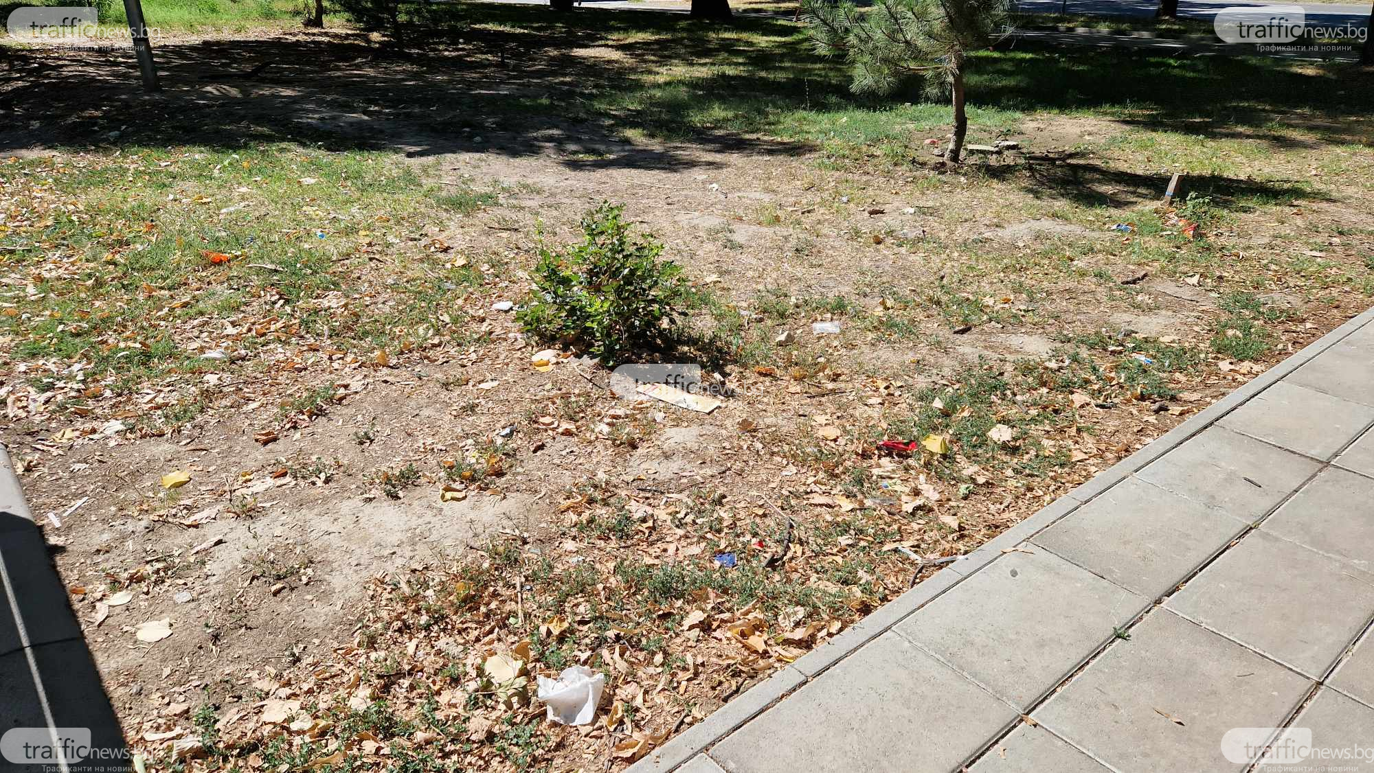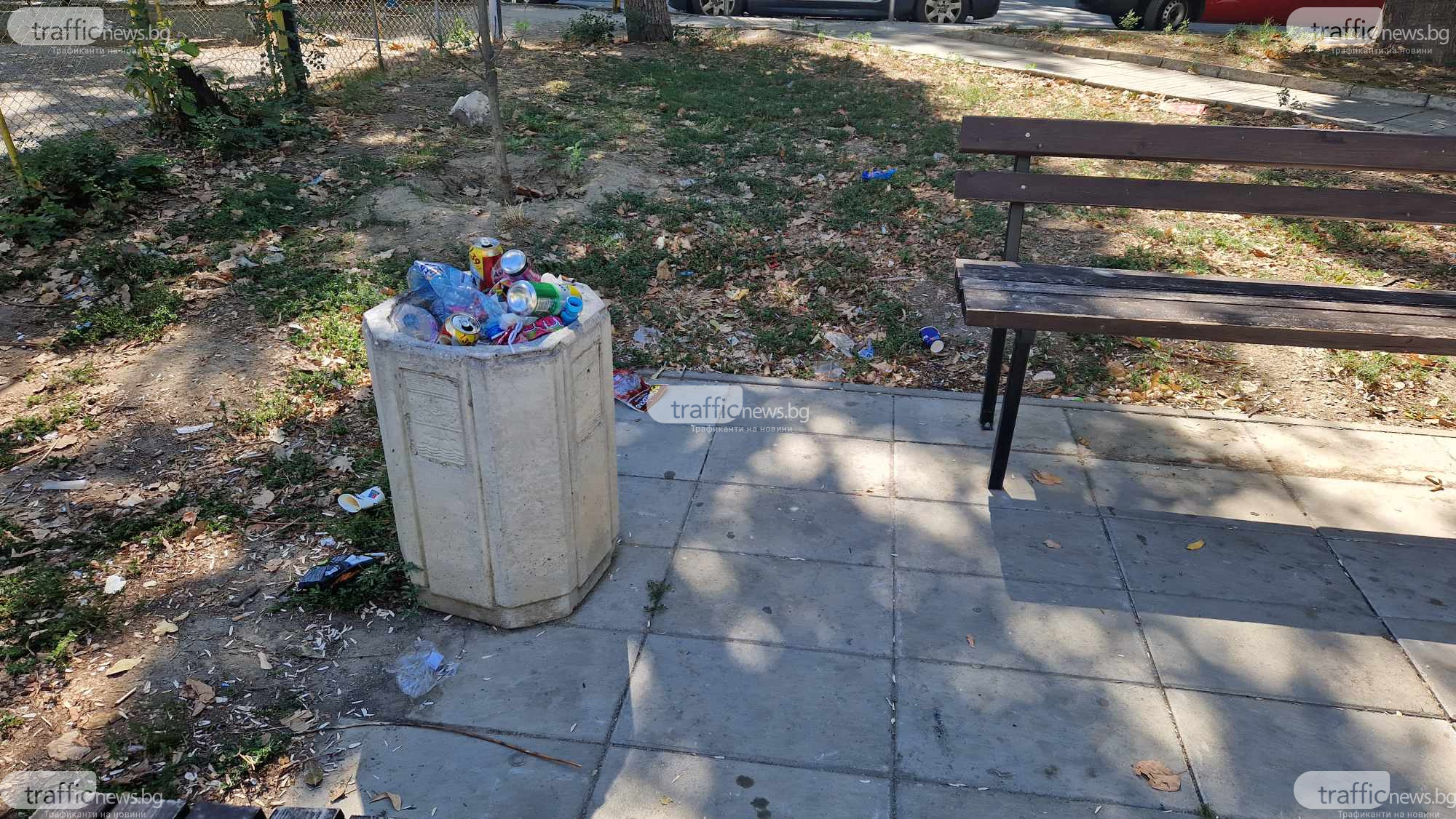 Днес обаче кошовете за отпадък още веднъж са претъпкани, по земята се търкалят всевъзможни боклуци. Навсякъде хвърчат опаковки от храна, кенчета от алкохол и енергийни питиета, чаши от кафета. Зелените площи са цялостни с фасове.