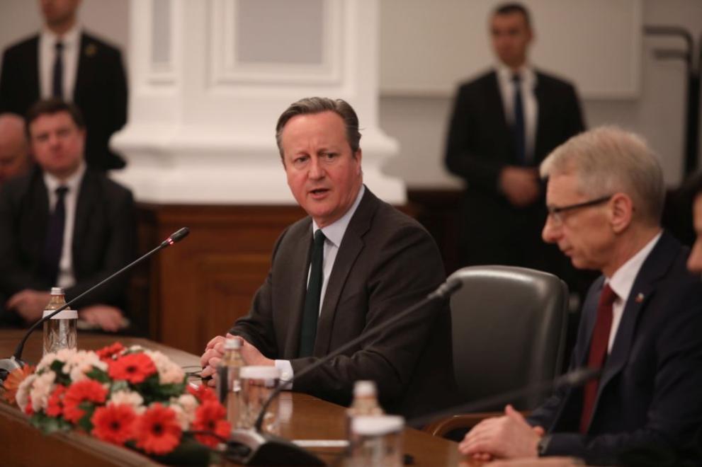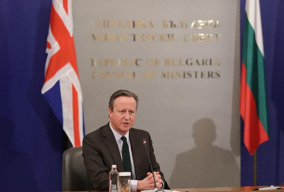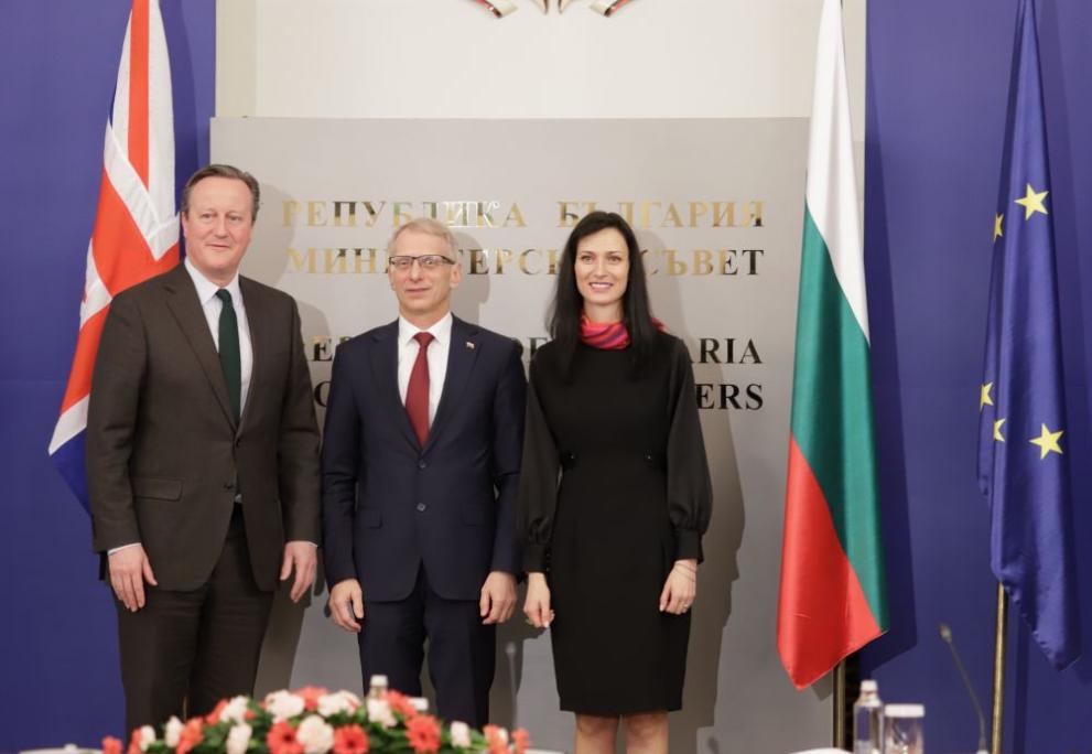 Рано сутринта министър председателят акад. Николай Денков и вицепремиерът и министър на външните работи Мария Габриел посрещнаха Камерън в Министерския съвет.