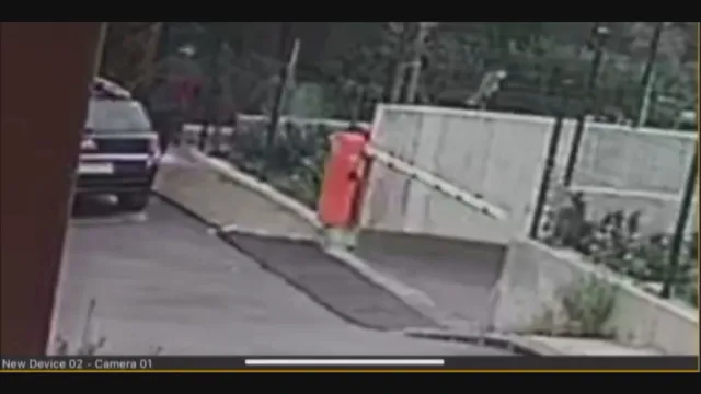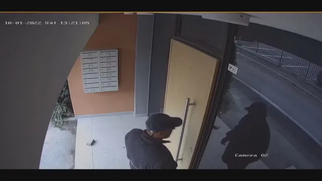 С помощта на инструмент за секунди мъжът отваря вратата на входа, след което влиза безусловно необезпокоявано.